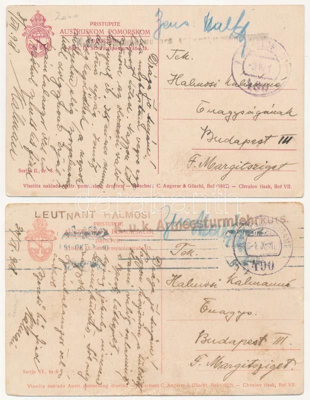Leírás: 2 db RÉGI motívum képeslap hajópostával / 2 pre-1945 motive postcards with ship posts (SMS Tegetthoff)