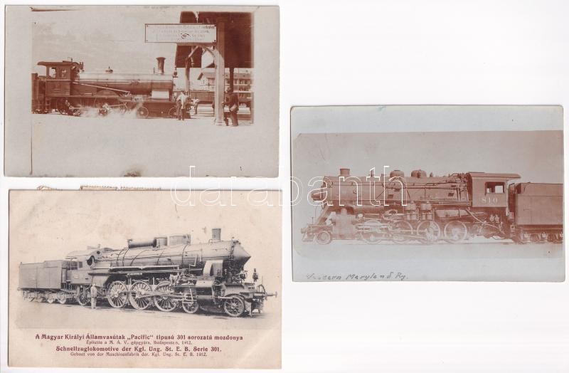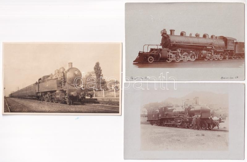 Leírás: 6 db RÉGI motívum képeslap és fotó: vonat, gőzmozdony / 6 pre-1945 motive postcards and photos: trains, locomotives