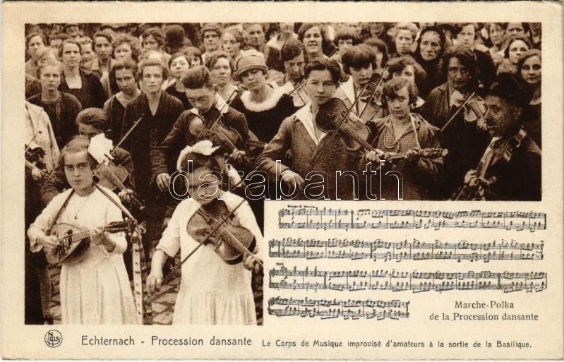 Echternach, Procession dansante, Le Corps du Musique improvise d'... https://www.darabanth.com/hu/405-Gyorsarveres/405.0/Kepeslapok/Luxemburg~1000044/Echternach-Procession-dansante-Le-Corps-du-Musique-improvise-damateurs-a-la-sortie-de-la-Basiliqu~II2503935