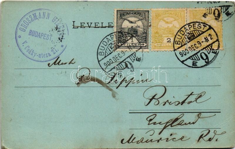 Leírás: 1900 Budapest, Lánchíd a Lipótváros egy részével és a Bazilika télen. Schmidt Edgar 1623S. (EB)