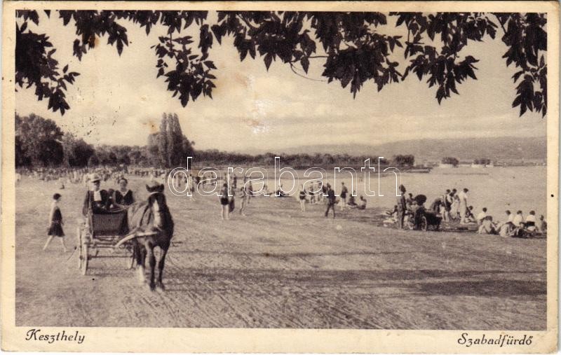 1934 Keszthely, Szabadfürdő, strand, lovaskocsi (Rb) https://www.darabanth.com/hu/405-Gyorsarveres/405.0/Kepeslapok/Magyarorszag~1000001/1934-Keszthely-Szabadfurdo-strand-lovaskocsi-Rb~II2502599
