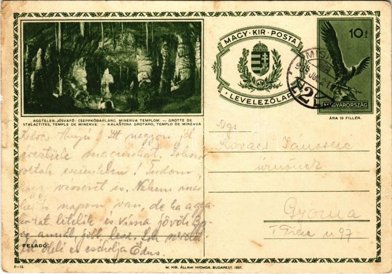 1938 Aggtelek-Jósvafő, Cseppkőbarlang, Minerva templom. Magy. Kir. Pos... https://www.darabanth.com/hu/405-Gyorsarveres/405.0/Kepeslapok/Magyarorszag~1000001/1938-Aggtelek-Josvafo-Cseppkobarlang-Minerva-templom-Magy-Kir-Posta-Levelezolap-fa~II2499278