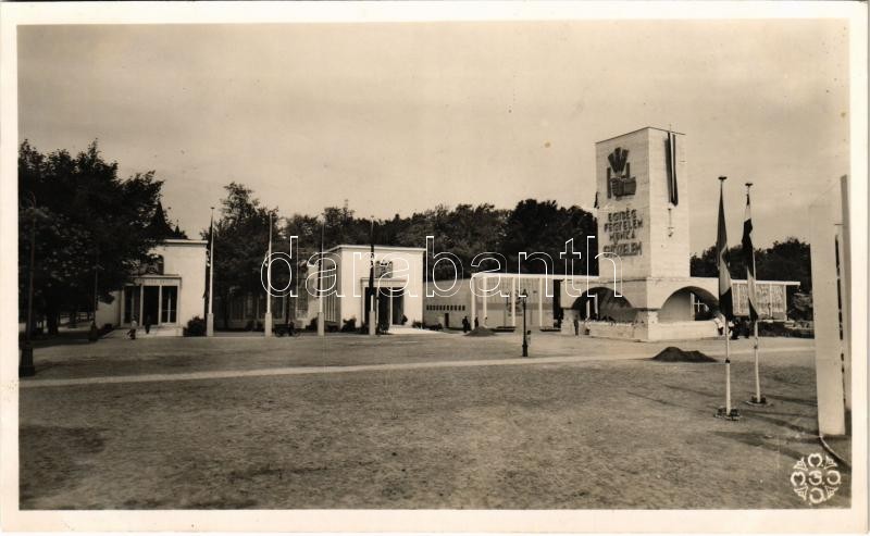 Leírás: 1942 Budapest, Nemzetközi Vásár Háborús Vásár, Egység, fegyelem, munka, győzelem pavilon