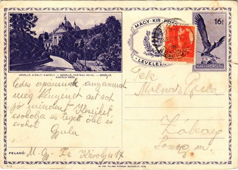 1943 Gödöllő, Királyi kastély. Magy. Kir. Posta Levelezőlap (szakadás ... https://www.darabanth.com/hu/405-Gyorsarveres/405.0/Kepeslapok/Magyarorszag~1000001/1943-Godollo-Kiralyi-kastely-Magy-Kir-Posta-Levelezolap-szakadas-tear~II2499273