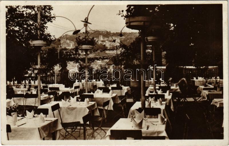 Leírás: Budapest I. Naphegy, Cziegler Jenő étterme, terasz. Czakó utca 1/3.