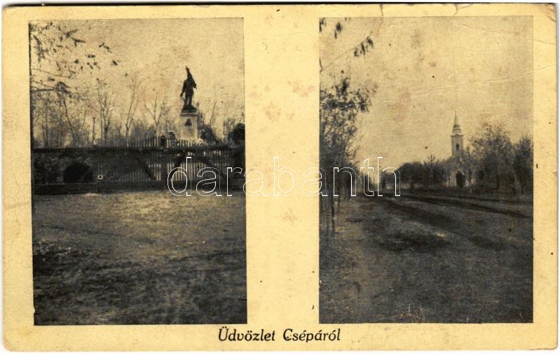 Csépa, Hősök szobra, emlékmű, templom (szakadások / tears) https://www.darabanth.com/hu/405-Gyorsarveres/405.0/Kepeslapok/Magyarorszag~1000001/Csepa-Hosok-szobra-emlekmu-templom-szakadasok-tears~II2500067