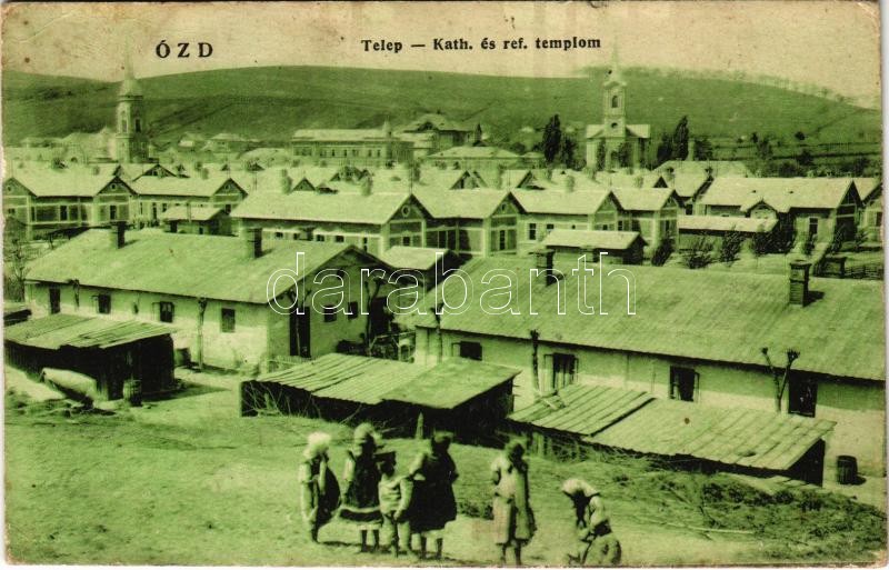 Leírás: Ózd, telep, katolikus és református templom (Rb)