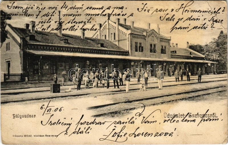 Szerencs, pályaudvar, vasútállomás. Gönczy Mihály kiadása (EB) https://www.darabanth.com/hu/405-Gyorsarveres/405.0/Kepeslapok/Magyarorszag~1000001/Szerencs-palyaudvar-vasutallomas-Gonczy-Mihaly-kiadasa-EB~II2170699