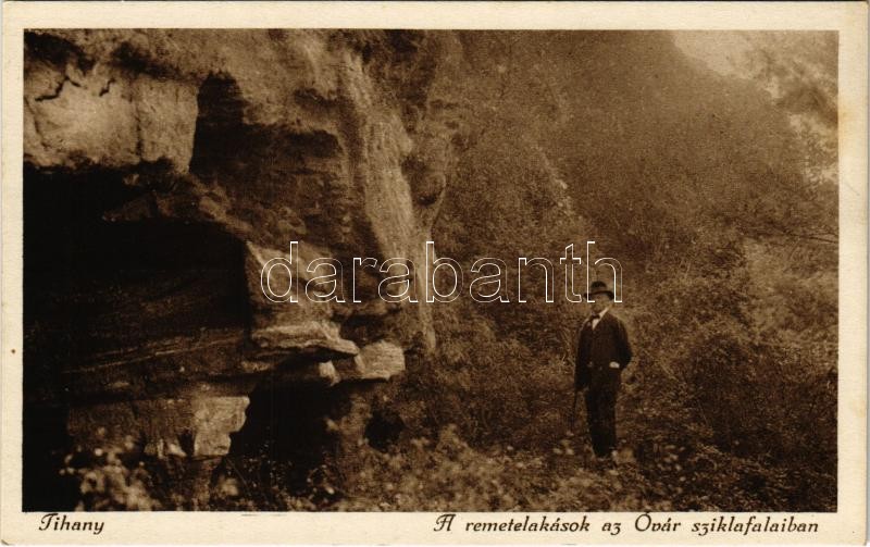 Tihany, Remetelakások az Óvár sziklafalaiban. Sohár András felvétele https://www.darabanth.com/hu/405-Gyorsarveres/405.0/Kepeslapok/Magyarorszag~1000001/Tihany-Remetelakasok-az-Ovar-sziklafalaiban-Sohar-Andras-felvetele~II2501725