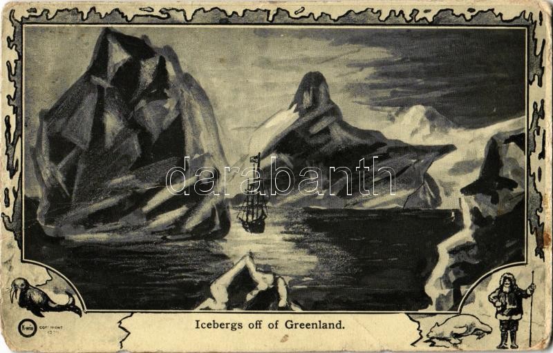 Icebergs off of Greenland, art postcard, Kawin & Co (fl) https://www.darabanth.com/hu/405-Gyorsarveres/405.0/Kepeslapok/Muveszlapok~1000085/Icebergs-off-of-Greenland-art-postcard-Kawin-Co-fl~II2027071