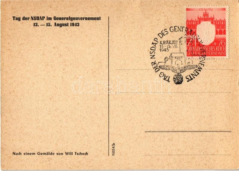 1943 Nicht du bist der Maßstab! Sondern die Front! / WWII NSDAP German Nazi Party military propaganda. Day of the General Government, Kraków s: Will Tschech + "Tag der NSDAP des Generalgouvernements Krakau 13-15. VIII. Krakau 1943" So. Stpl. (EB)