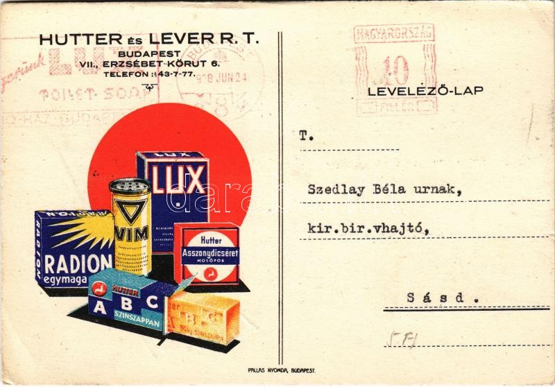 1938 Hutter és Lever RT. szappan és mosópor reklámja / Hungarian soap ... https://www.darabanth.com/hu/405-Gyorsarveres/405.0/Kepeslapok/Reklam~1000090/1938-Hutter-es-Lever-RT-szappan-es-mosopor-reklamja-Hungarian-soap-and-washing-powder-adverti~II2503022