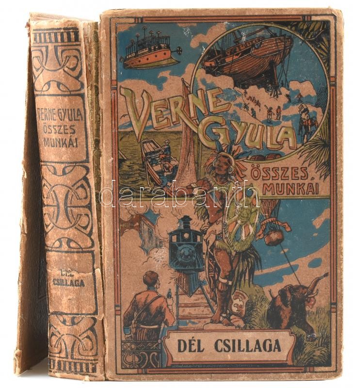 Leírás: Verne Gyula: Dél csillaga. Regény. Ford.: Banyai Elemér. Verne Gyula munkái. Geiger Richárd rajzaival. Bp., ,Magyar Kereskedelmi Közlöny, 188 p. Kiadói illusztrált kartonált papírkötés, sérült, kopott borítóval és gerinccel, a kötéstáblák leváltak.