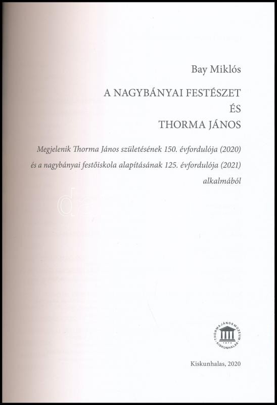 Bay Miklós: A nagybányai festészet és Thorma János. Kiskunhalas, 2020, szerző és Thorma János Múzeum kiadása. Fekete-fehér képekkel gazdagon illusztrált. Kiadói kartonált papírkötés, jó állapotban.