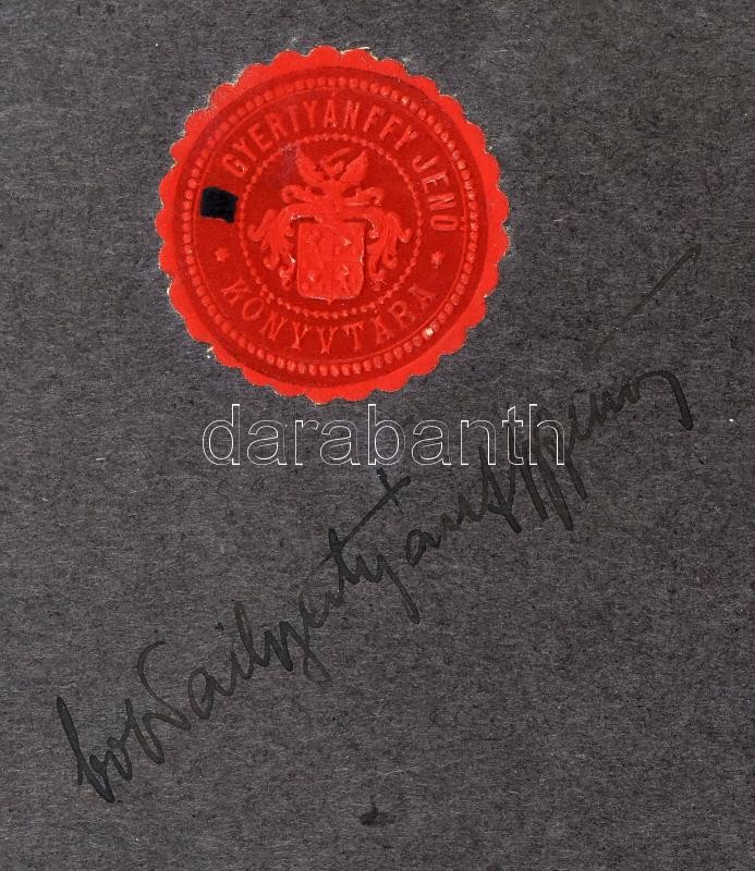 Divald Kornél: Magyarország művészeti emlékei. Bp., 1927, Kir. M. Egyetemi Nyomda, 256 p. Gazdag fekete-fehér szövegközti képanyaggal illusztrált. Kiadói aranyozott félbÅ‘r kötés, a borÃtón kis sérülésnyomokkal, a borÃtón kis kopásnyomokkal. "Gyertyánffy JenÅ‘ Könyvtára" cÃmeres cÃmkével és Gyertyánffy JenÅ‘ névbejegyzésével.