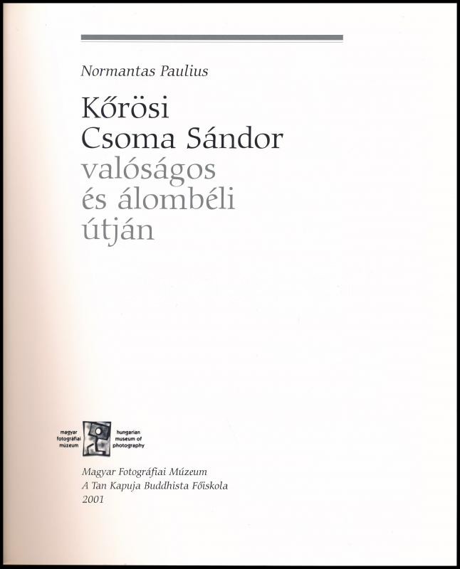 Normantas Paulius: Kőrösi Csoma Sándor valóságos és álombeli útján. Szerk.: Kolta Magdolna. Bp., 2001., Magyar Fotográfiai Múzeum-Tan Kapuja Buddhista Főiskola. Normantas Paulius (1948-2017) litván származású magyar fotóművész Kőrösi Csoma Sándor útját végigkövető (India, Tibet, Belső-Ázsia...stb.) nagyon gazdag fekete-fehér képanyaggal illusztrált. Kiadói papírkötés.