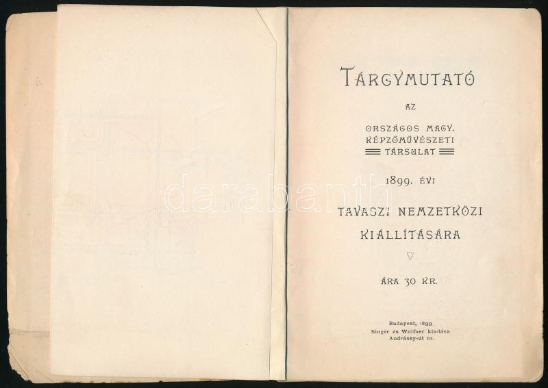 Leírás: Tavaszi Nemzetközi Kiállítás 1899. Országos Magyar Képzőművészeti Társulat Budapesten. Bp., Singer és Wolfner. Kiadói papírkötés, viseltes állapotban.
