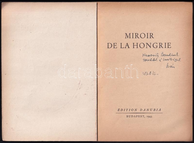 Boldizsár Iván: Miroir de la Hongrie. Kassovits Endrének dedikált! Bp.... https://www.darabanth.com/hu/405-Gyorsarveres/405.0/Konyvek/Konyvek-Tortenelem~2000004/Boldizsar-Ivan-Miroir-de-la-Hongrie-Kassovits-Endrenek-dedikalt-Bp-1943-Danubia-Kiadoi-p~II2499431