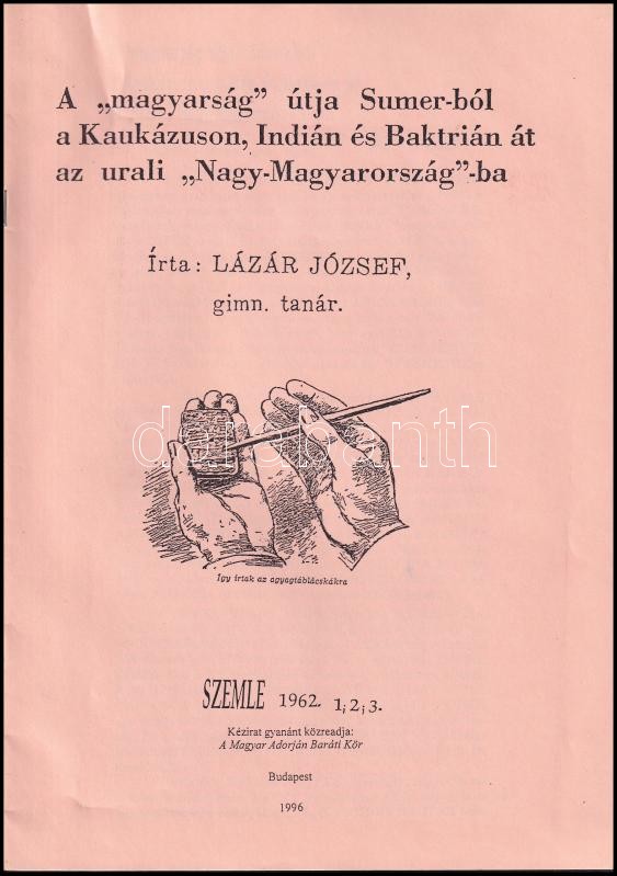 Lázár József: A "magyarság" útja Sumer-ból a Kaukázuson, Indián és Baktrián át az urali "Nagy-Magyarországba". Bp., 1996. Papírkötésben, jó állapotban.