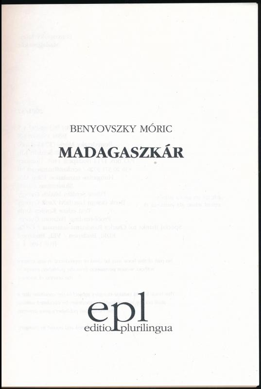 Leírás: Benyovszky Móric: Madagaszkár. Editio Plurilingua. Bp., 2001. Serdian Kft. Kiadói papírkötés.