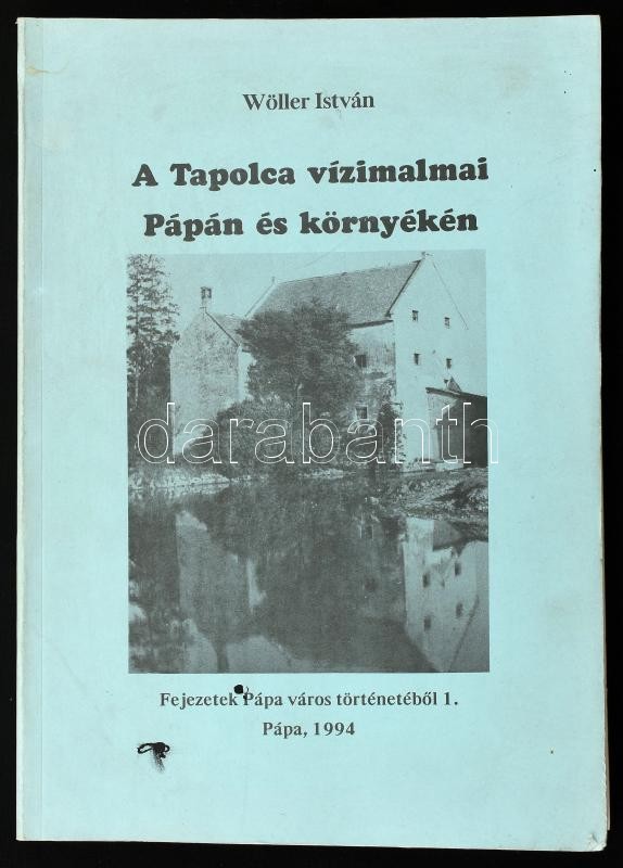 Wöller István: A Tapolca vízimalmai Pápán és környékén. Fejezetek Pápa város történetéből 1. Pápa, 1994, Pápa Város Önkormányzata. 182 p. Fekete-fehér képekkel illusztrálva. Kiadói papírkötés, részben szétvált kötéssel, a lapok egy része kijár. Megjelent 1000 példányban.