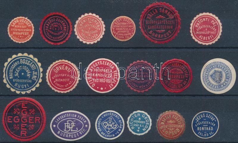 Gyógyszertár, patikusok pecsétbélyegei 18 db