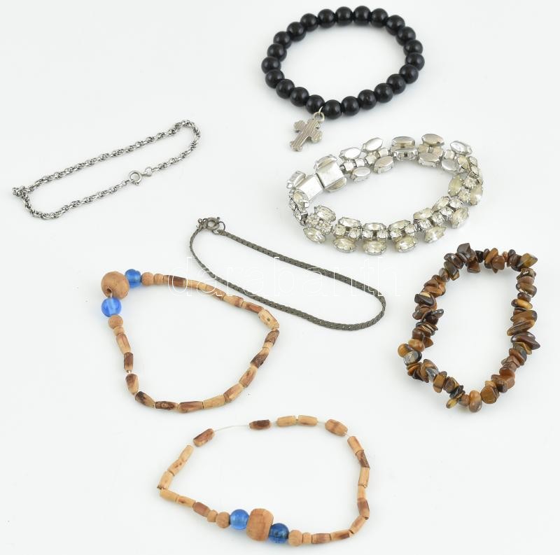 Leírás: 6 db bizsu karkötő + 1 db ezüst(Ag) jelzett karlánc