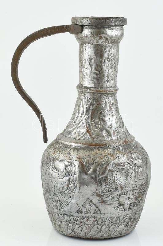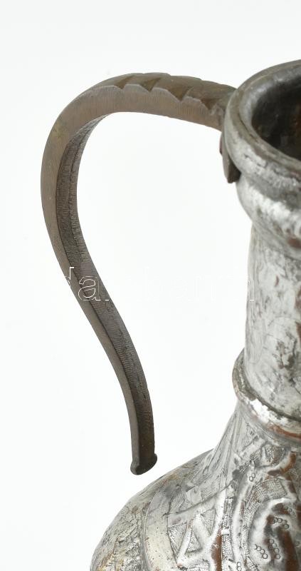 Leírás: Kézzel formázott réz vizeskorsó keleti díszítéssel. XX. sz eleje 34 cm