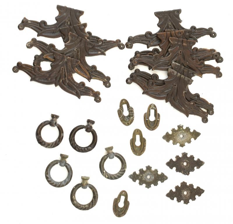 Leírás: Régi fém bútorveretek, összeillő darabok, 4 különféle, összesen 23 db