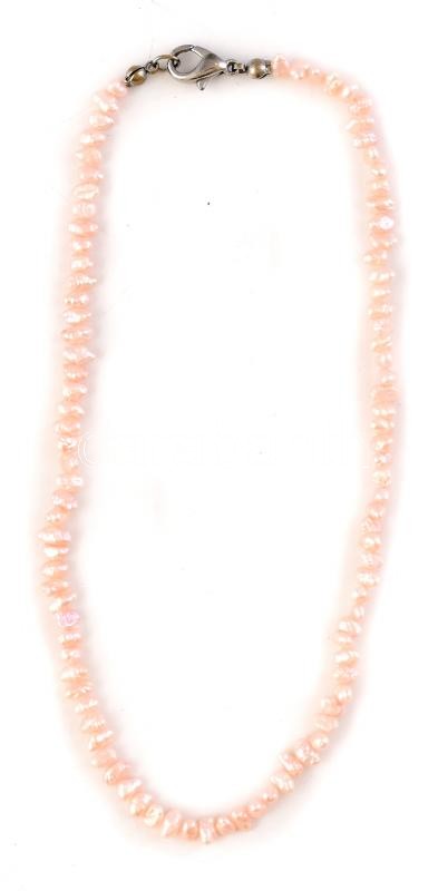 Rózsaszín tenyésztett gyöngy lánc, h: 31 cm