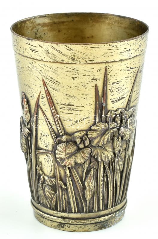 Leírás: Szecessziós, ezüstözött fém pohár, sérült, m: m:9cm