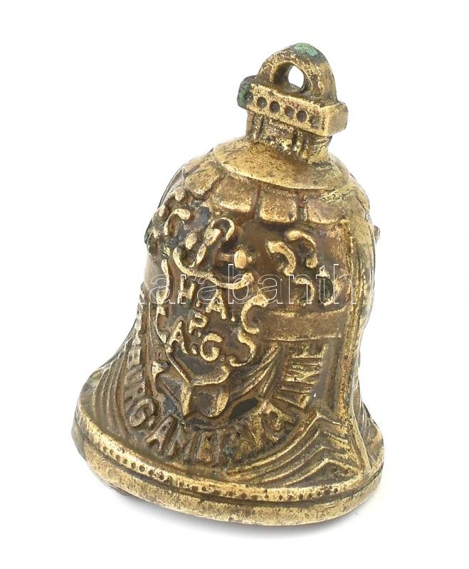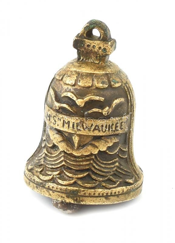 Leírás: cca 1930-1940 H.A.P. A.G. Hamburg-Amerika Linie német hajózási vállalat M.S. Milwaukee gőzhajójának ajándék csengője, réz, kopásnyomokkal, h: 5 cm