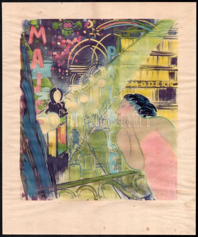 Leírás: Vaszary János (1867-1939) festményéről készült régebbi ofszet reprodukció, foltos, hullámos, 22,5x19,5 cm