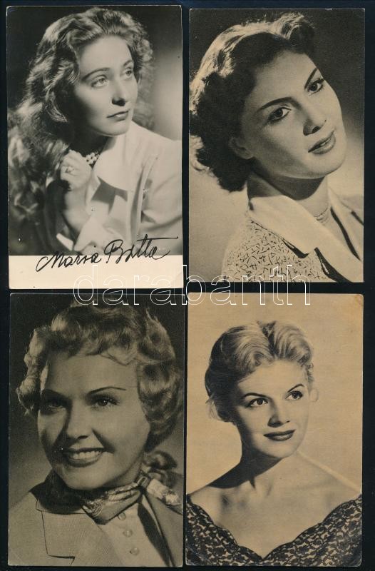 Leírás: cca 1960 5 db magyar és 5 db külföldi színésznő képeslap méretű fotó, egyiken Maria Botta román színésznő aláírásával