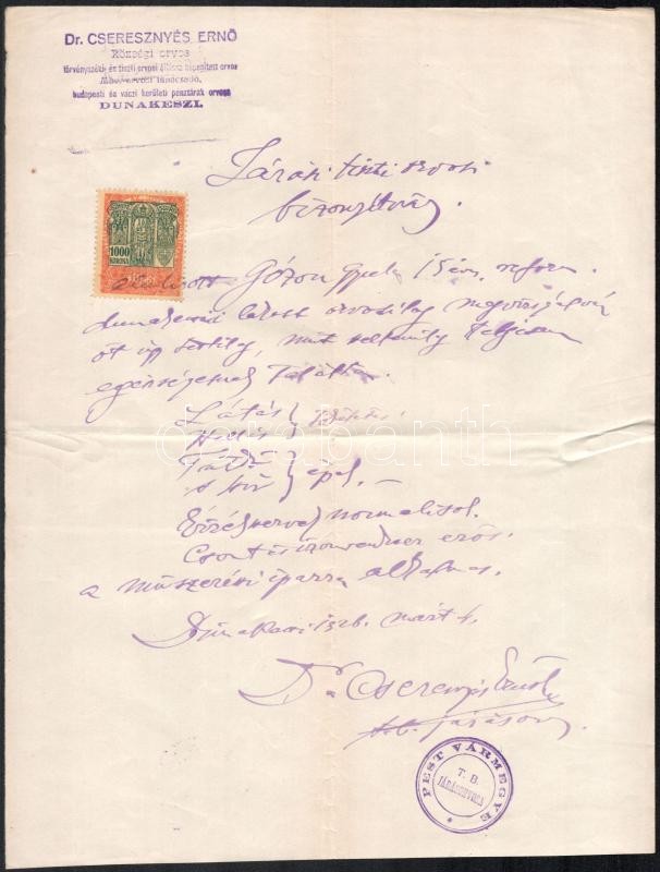 1926 Dunakeszi Cseresznyés Ernő körzeti orvos pecsétes igazolása https://www.darabanth.com/hu/405-Gyorsarveres/405.0/Mutargy-papirregiseg-egyeb/Okmanyok~18/1926-Dunakeszi-Cseresznyes-Erno-korzeti-orvos-pecsetes-igazolasa~II2502651