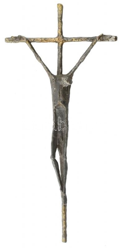 Leírás: Erwin Huber (1929-2006): Feszület. Fém. Jelzett. 20 cm