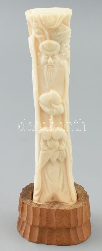 Leírás: Keleti bölcs. Faragott csont szobrocska fa talapzaton 16 cm