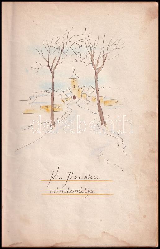Leírás: Kis Jézuska vándorútja, kézzel rajzolt képekkel illusztrált gépelt verses füzet