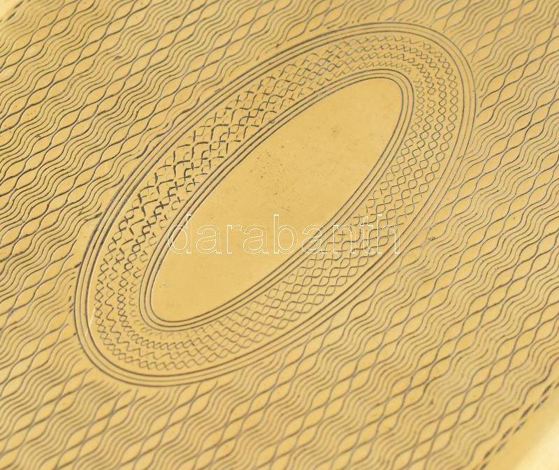 Leírás: Art deco cukordoboz. Aranyozott alpakka, Kulcs nélkül, jelzett. 12x8x9 cm