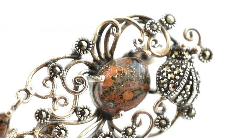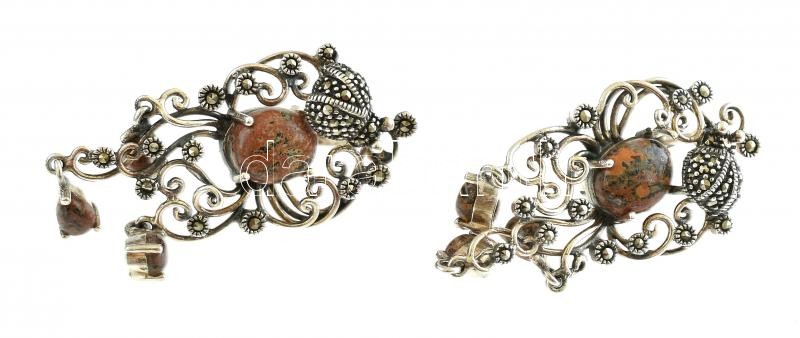 Leírás: Ezüst(Ag) ásvánnyal és markazittal díszített fülbevalópár, jelzett, h: 4,5 cm, bruttó: 11,77 g