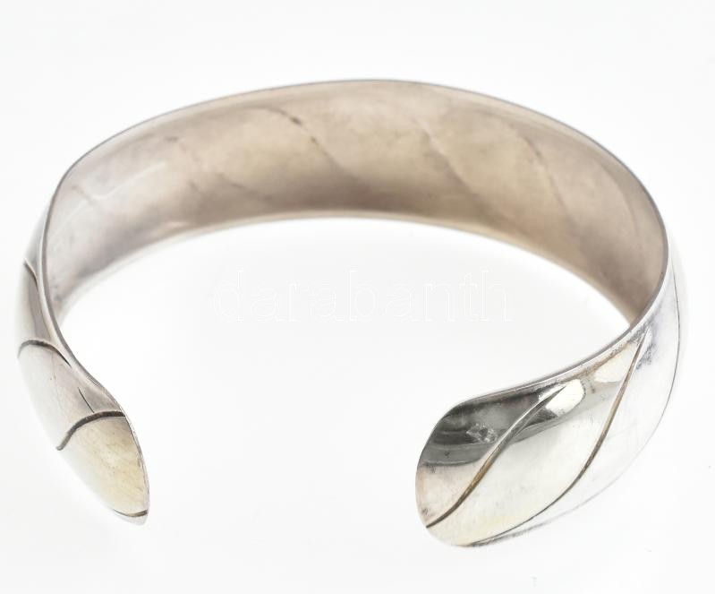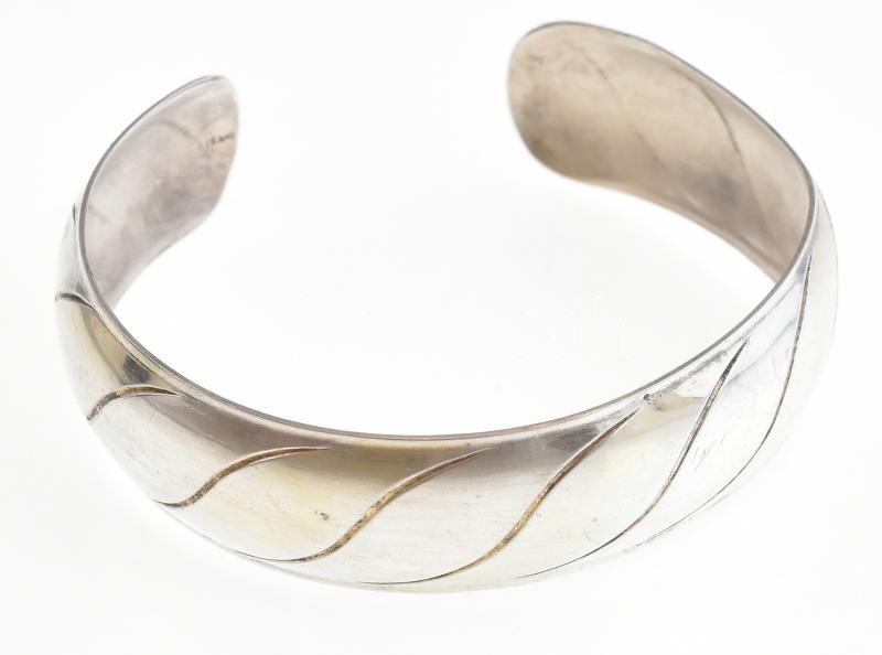 Leírás: Ezüst(Ag) karperec, jelzett, 5,5×5,5 cm, kis deformációval, nettó: 16,59 g