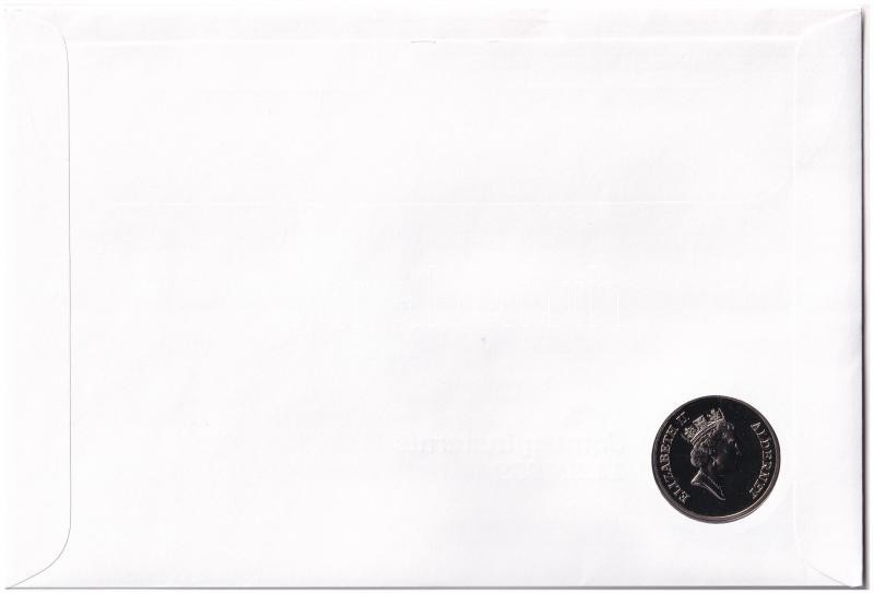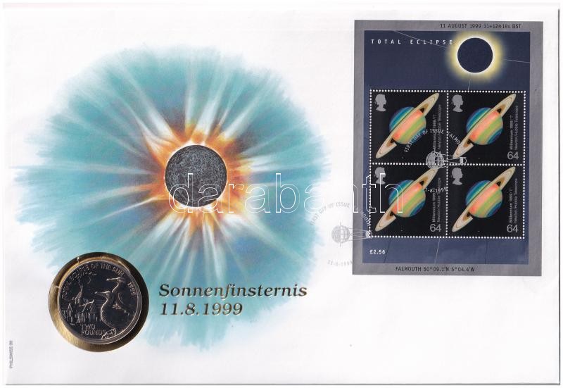 Alderney 1999. 2Ł Cu-Ni "Teljes napfogyatkozás" érmés borítékban, elsőnapi bélyegzéses bélyeggel, német nyelvű leírással T:1 Alderney 1999. 2 Pounds Cu-Ni "Total Eclipse of the Sun" in coin envelope with first day of issue stamp, with German description C:UNC Krause KM#18