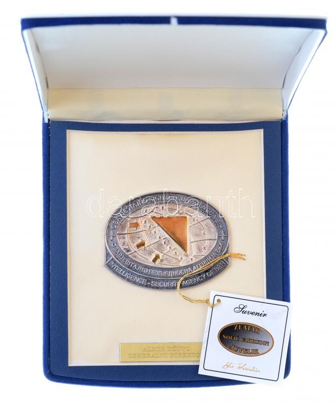 Bosznia-Hercegovina DN "Bosznia-Hercegovina Titkosszolgálati és Hírszerző Ügynöksége" névre szóló fém emlékplakett eredeti tokba rögzítve, tanúsítvánnyal (68x54mm) T:1-