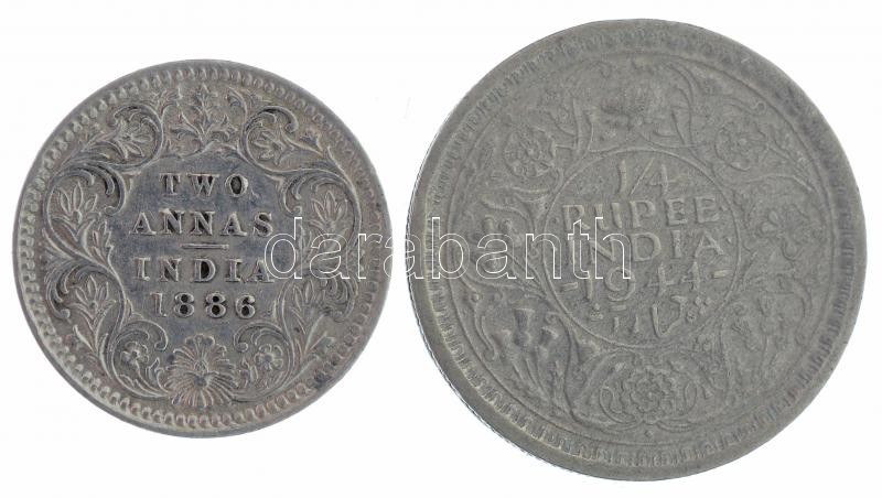 Leírás: Brit-India 1886. 2A Ag "Viktória" + 1944. 1R Ag "VI. György" T:1-,2