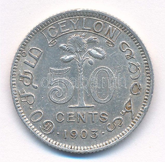 Ceylon 1903. 50 C... https://www.darabanth.com/hu/405-Gyorsarveres/405.0/Numizmatika/Kulfoldi-fem-es-ezustpenzek~1500014/Ceylon-1903-50c-Ag-VII-Eduard-T2-ph-Ceylon-1903-50-Cents-Ag-Edward-VII-CXF-edge-error-K~II2499195