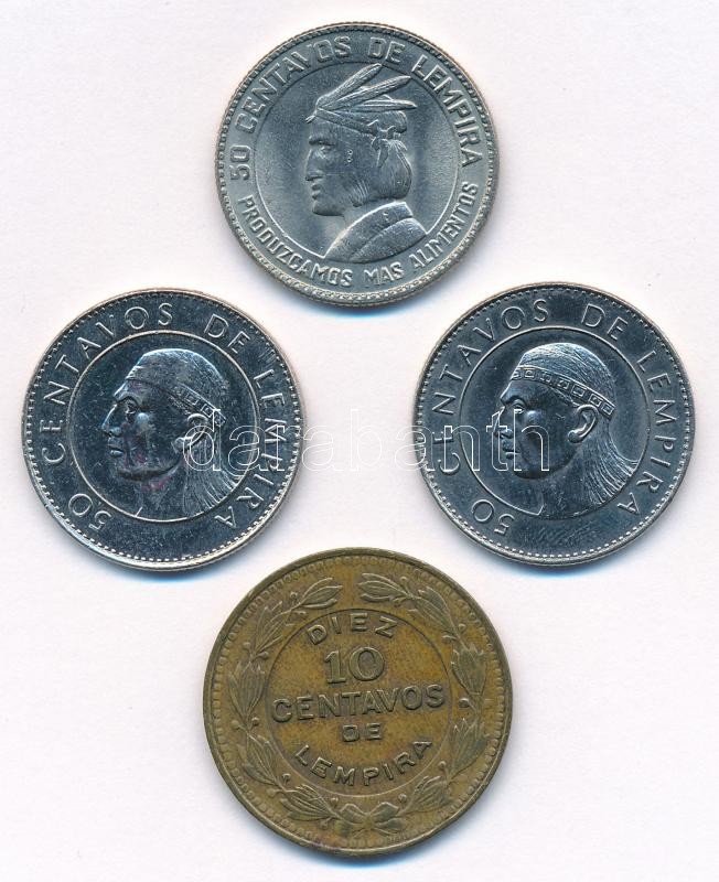 Leírás: Honduras 1973. 50c Cu-Ni "FAO" + 1989. 10c sárgaréz + 1991-1994. 50c Ni-acél (2xklf) T:2