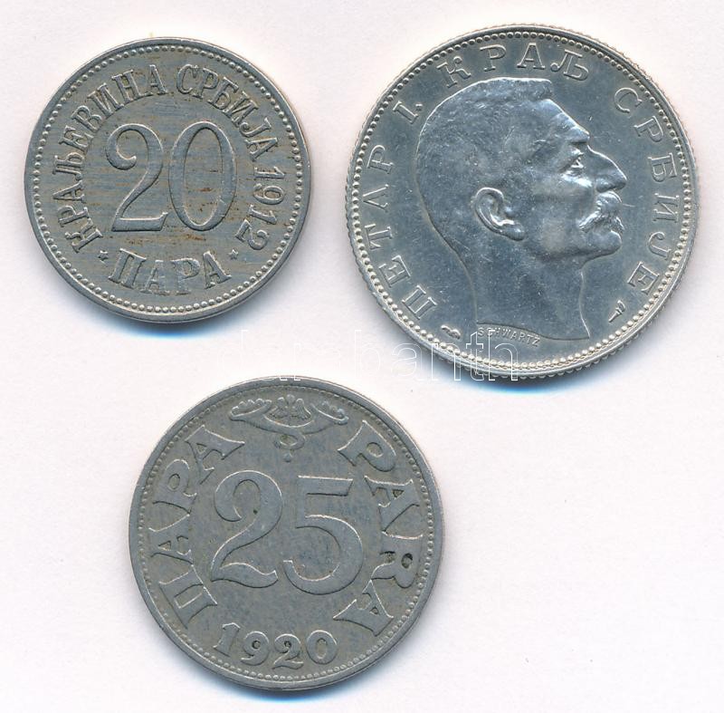 Serbia 1912. 20 Para Cu-Ni + 1915. 2 Dinara Ag "Petar I" + 1920. 25 Para Ni-Brass C:AU,XF