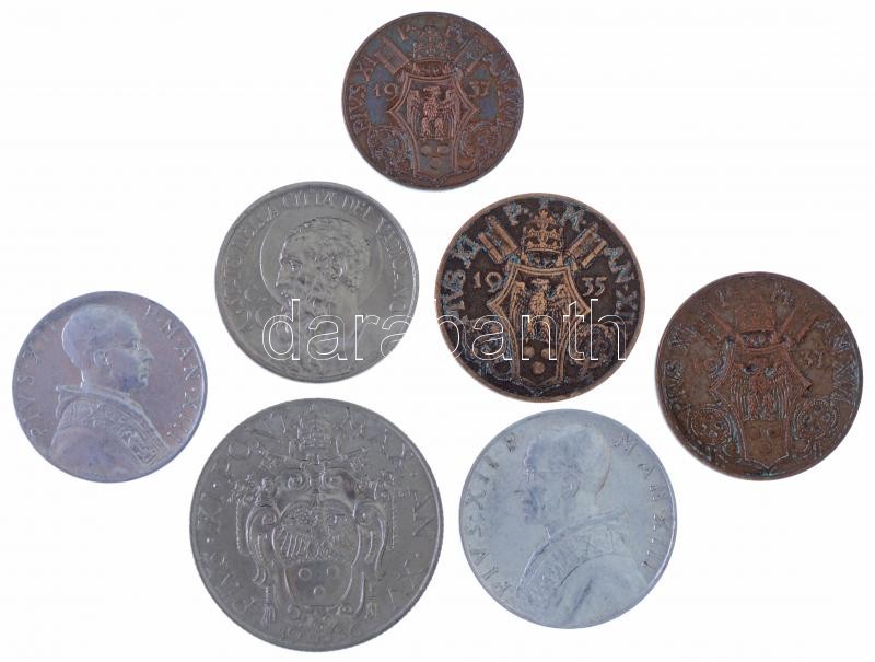 Vatican 1935. 10 Centesimi Br "Pius XI" + 1936. 1 Lire Ni "XI. Pius" + 1937. 5 Centesimi Br "Pius XI" + 10 Centesimi Br "Pius XI" + 20 Centesimi Ni "Pius XI" + 1951. 5 Lire Al "Pius XII" + 10 Lire Al "Pius XII" T:XF,VF
