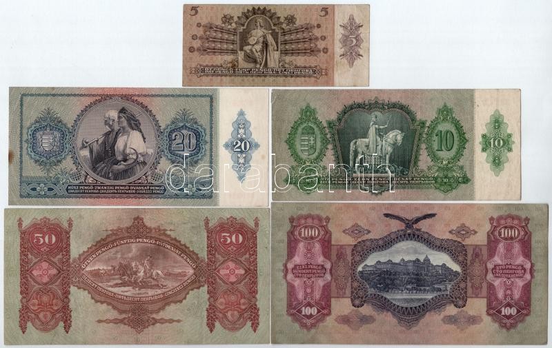 1930. 100P + 1932. 50P + 1936. 10P + 1939. 5P + 1941. 20P T:III https://www.darabanth.com/hu/405-Gyorsarveres/405.0/Numizmatika/Magyar-bankjegyek~1500007/1930-100P-plus-1932-50P-plus-1936-10P-plus-1939-5P-plus-1941-20P-TIII~II2498508