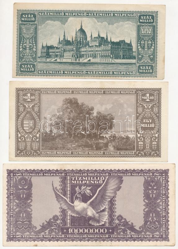 Leírás: 1946. 1.000.000MP + 10.000.000MP + 100.000.000MP T:II-,III